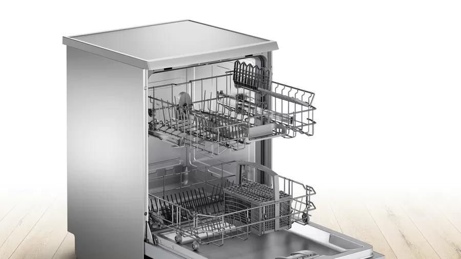 With a 12-place-setting capacity, the Bosch SMV50E00GC can easily handle daily dishwashing for families. The dishwasher features five wash programs, allowing users to choose the ideal cycle for heavily soiled cookware, delicate glassware, or quick everyday cleaning.