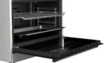 Its durable stainless-steel finish and cast-iron pan supports ensure stability, durability, and easy cleaning. The cooker also features closed-door grilling technology, which retains heat inside the oven for faster and more efficient cooking.