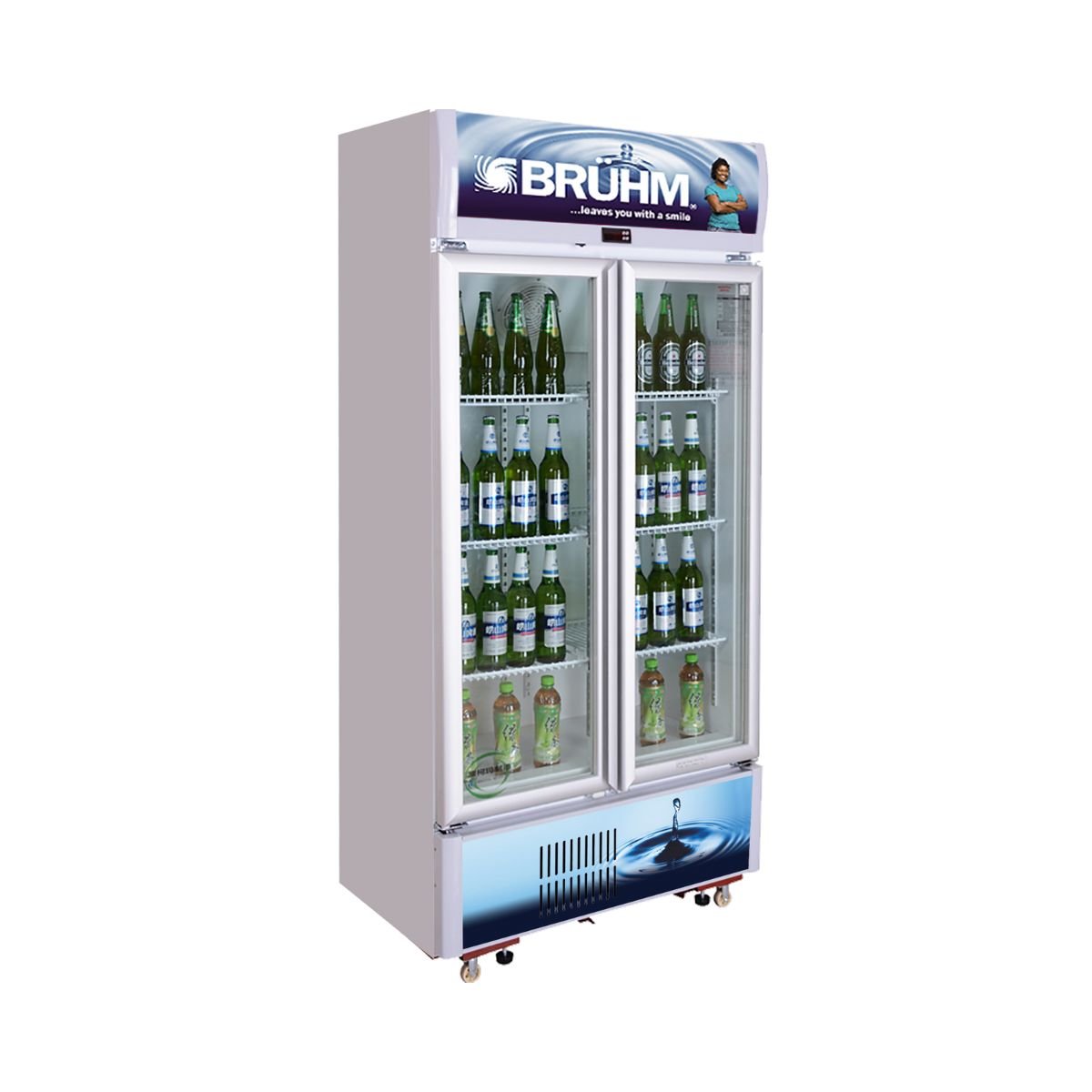 Bruhm 487L Beverage Cooler BBS-500E is a large commercial display beverage cooler designed for supermarkets, bars, restaurants, and shops to keep drinks cold while displaying them through a glass door.