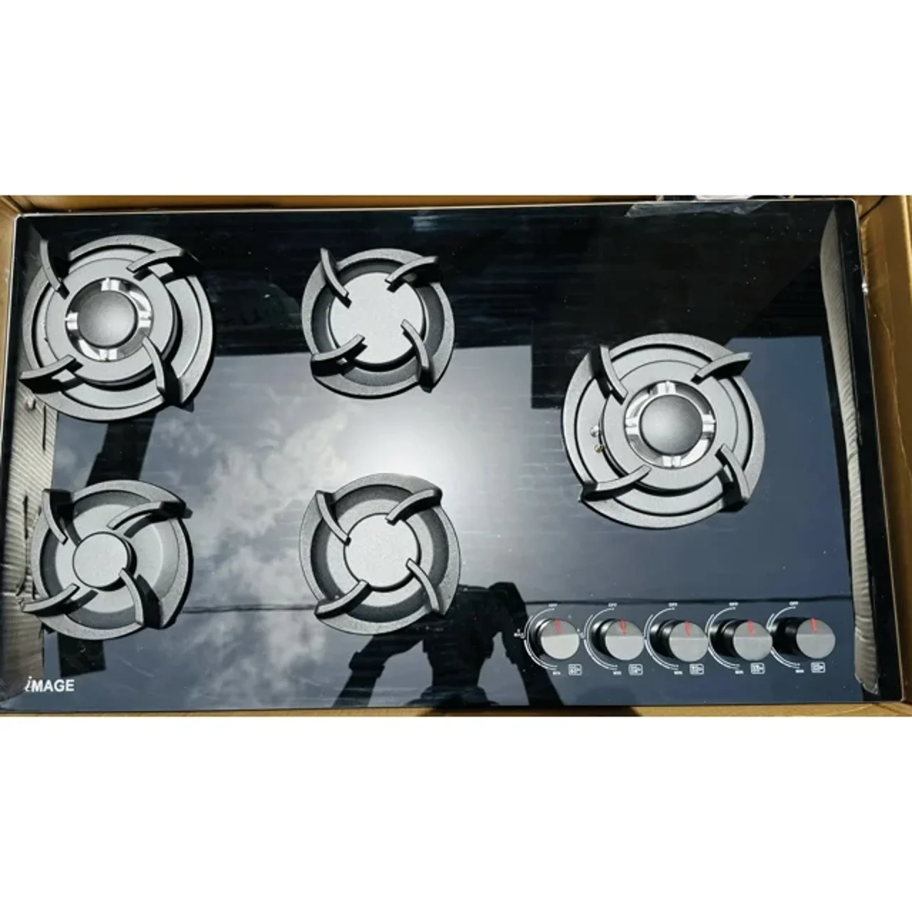 iMAGE 5 Burner Bult in Gas Cooker IM-09A4 is a premium kitchen appliance designed to deliver powerful cooking performance and modern style. With its five-burner configuration, this built-in gas hob allows you to cook multiple dishes at the same time, making it ideal for large families and busy kitchens. Its sleek black tempered glass surface adds elegance to your kitchen while providing durability and easy cleaning.