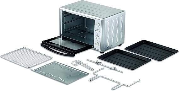 - Accessories: Griddle, Handle for Remove Griddle, 2 Enamel Bake Tray, Rotisserie, Handle For Remove Rotisserie, Crumb Tray
