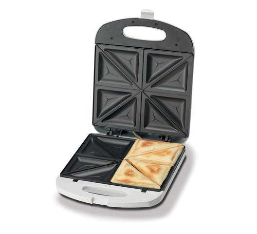 - Sandwich maker with non-stick fixed griddle plates for easy cleaning