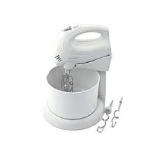Kenwood 250W Hand Mixer HM430 is a versatile 250W hand mixer with a stand and 2.7L rotating bowl, offering 6 speeds plus Turbo, stainless steel beaters/dough hooks, and a splash guard for hands-free or manual mixing, ideal for everyday baking tasks like cake batter, creams, and dough, designed for easy use with a tilt-back head and international voltage compatibility (INT/ROHS).