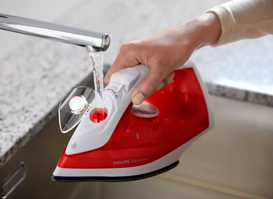 Philip 2000W Steam Iron Red GC1742/46 easy Speed iron makes you’re your ironing easy and effective with lots of steam to remove tough creases, non-stick soleplate for easy gliding on all fabrics, Calc Clean function for durable performance.