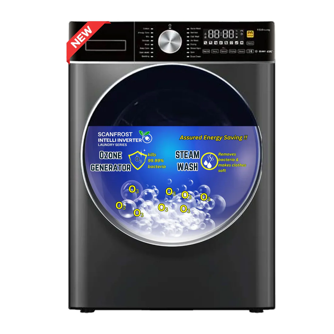 Designed in a sleek dark grey finish, the Scanfrost SFWMFL8000INVME combines modern style with powerful functionality, making it a perfect addition to any home.
